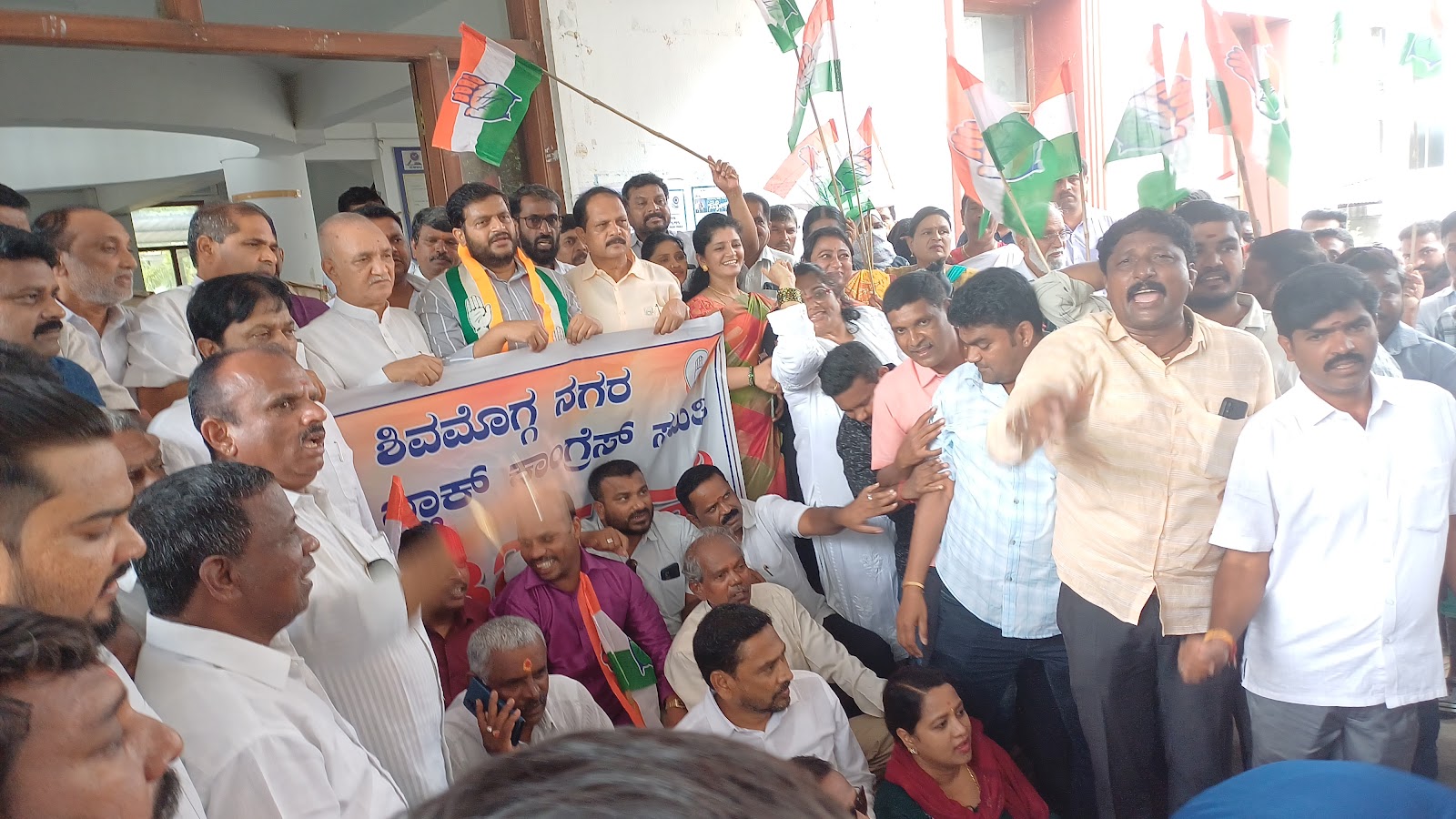 ಇಂದು ಶಿವಮೊಗ್ಗ ನಗರ ಉತ್ತರ ಬ್ಲಾಕ್ ಕಾಂಗ್ರೆಸ್ ಸಮಿತಿ ಅಧ್ಯಕ್ಷ ಎಸ್ ಶಿವಕುಮಾರ್ ನೇತೃತ್ವದಲ್ಲಿ ಪ್ರತಿಭಟನಾ ಮೆರವಣಿಗೆ ನಡೆದಿದ್ದು, ಕಾಂಗ್ರೆಸ್ ಕಚೇರಿಯಿಂದ ಜಿಲ್ಲಾಧಿಕಾರಿಗಳ ಕಚೇರಿಗೆ ತಲುಪಿ ಡಿಸಿಗೆ ಮನವಿ ಸಲ್ಲಿಸಲಾಯಿತು‌.